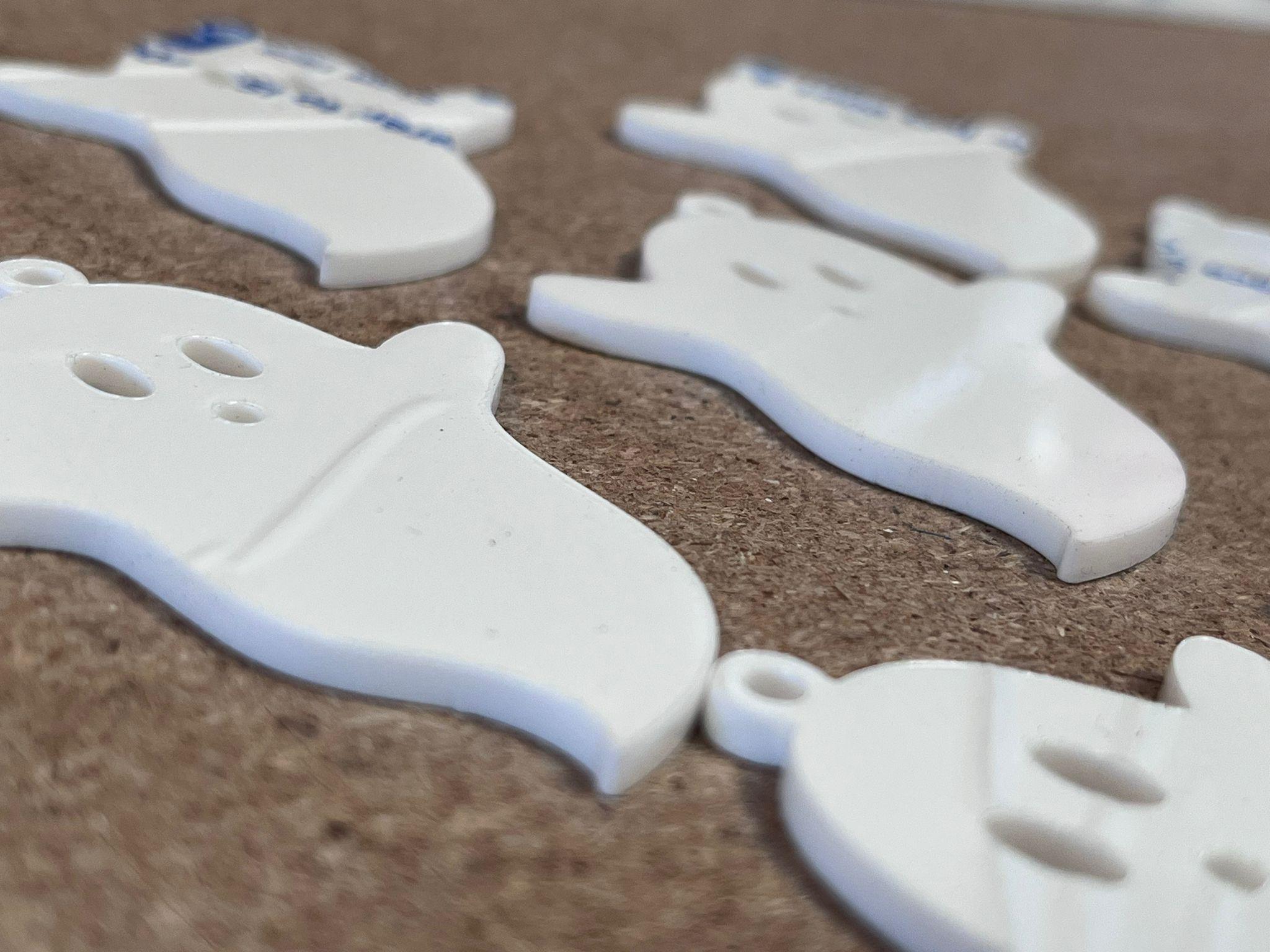 Pack of 10 White Gloss Acrylic Ghost Shape Blanks – 6.5cm x 5cm
