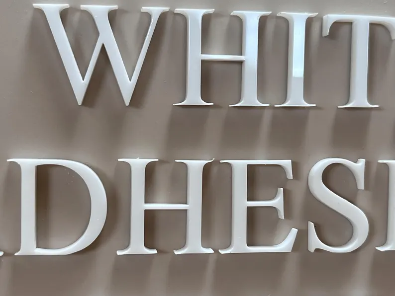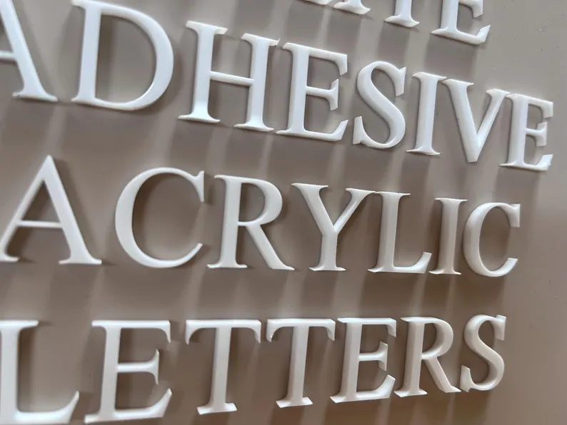 White Gloss Acrylic Adhesive letters in Times New Roman Font.